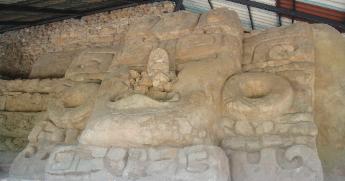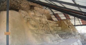 Acanceh is 11 meters high. One of the older layers of the pyramid has